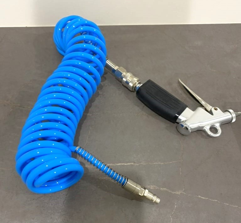 Zgrzewarki, obcinarki i testy zgrzewuPistolet Dina z wężem spiralnym 5 m do sprężonego powietrza, z szybkozłączką. Producent nie zaleca używania tego węża do wody.